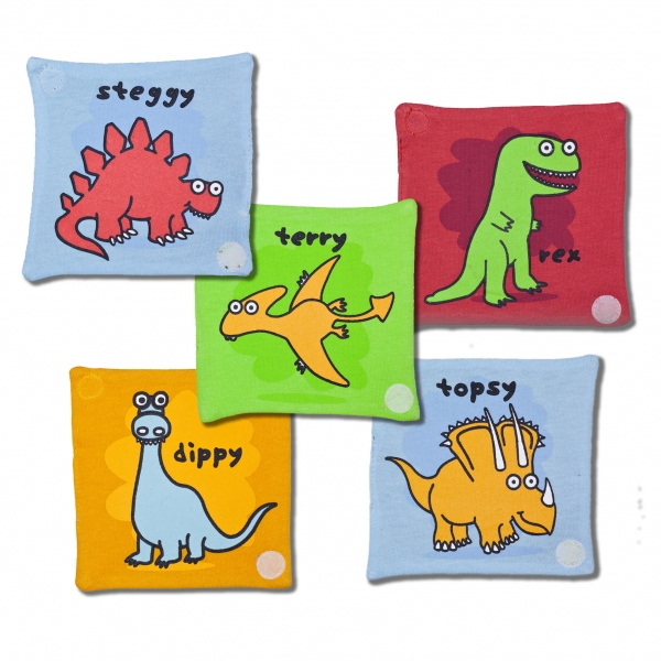Always popular with kids, this five piece dinosaur set is great fun. Machine washable organic cotton jersey.